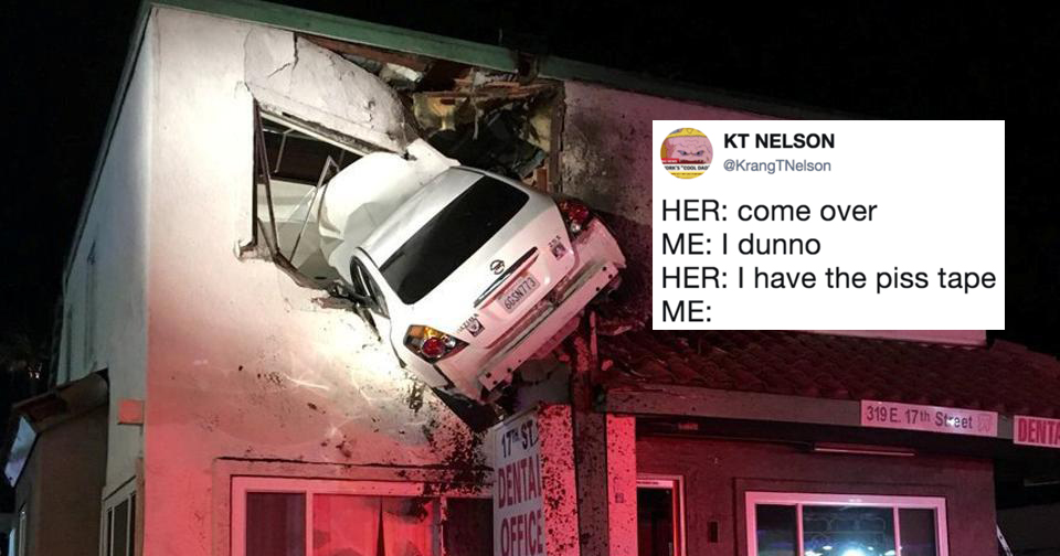 A nissan altima flew and crashed into the second floor of a dentist office building in santa ana california.